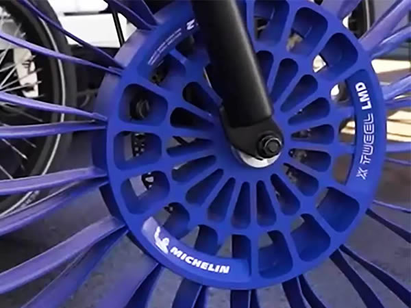 Los neumáticos sin aire están recibiendo cada vez más inversión por parte de los fabricantes para convertirlos en una realidad, sobre todo para aplicaciones industriales y vehículos eléctricos. Michelin, que hace unos años ya había dado sus primeros pasos en este tipo de productos, ha presentado en el CES 2022 las X Tweel, una solución especifica para bicicletas eléctricas de carga que realizan repartos de última milla. Las cargas que deben soportar este tipo de vehículos, muchas veces con ruedas de diámetro reducido, suelen provocar pinchazos y deformaciones en las llantas que reducen su tiempo productivo.
