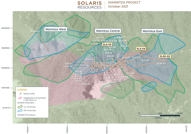 October 25, 2021 – Vancouver, B.C. – Solaris Resources Inc. (TSX: SLS; OTCQB: SLSSF) (“Solaris" or the “Company") is pleased to report assay results from a series of additional holes from ongoing resource growth and discovery drilling programs at its Warintza Project (“Warintza” or “the Project”) in southeastern Ecuador.